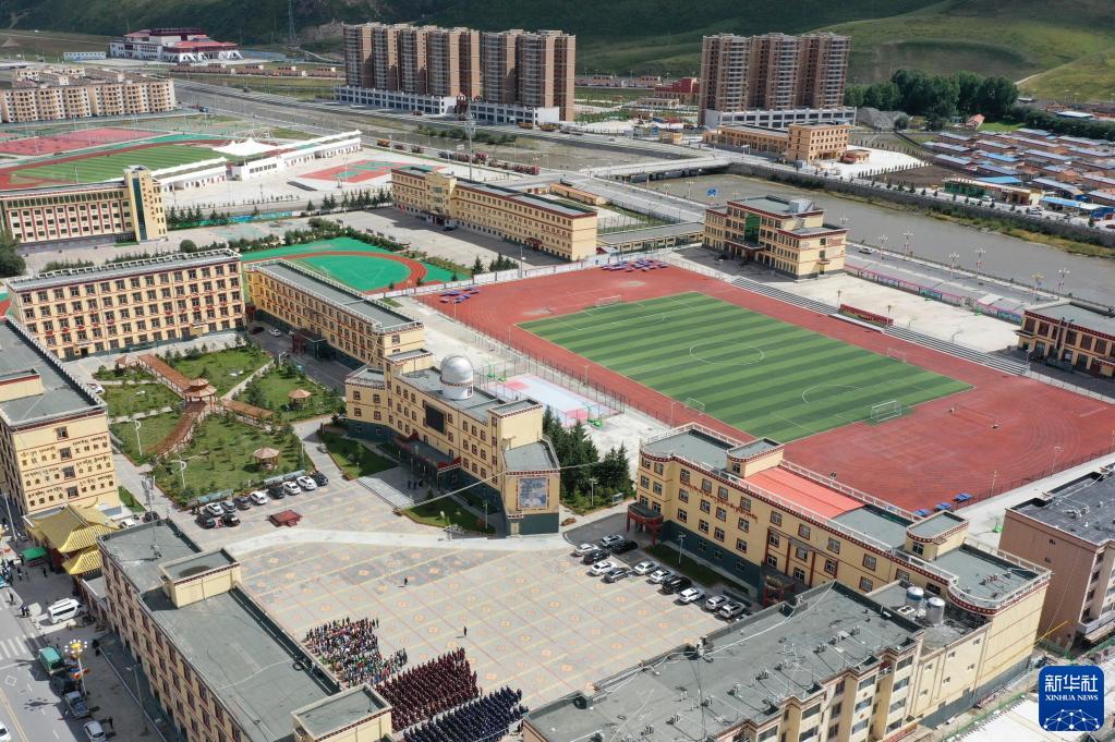 這是8月30日拍攝的碌曲縣藏族中學(xué)(無人機(jī)照片)。新華社記者 杜哲宇 攝