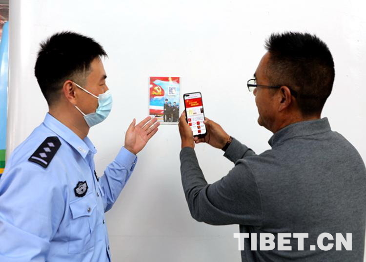 圖為民警向當(dāng)?shù)馗刹拷榻B黨史“碼”上學(xué)