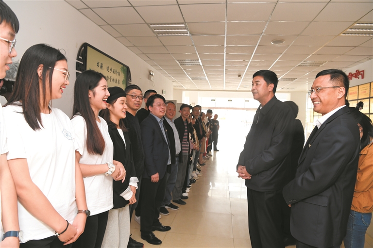“你們辛苦了!祝大家節(jié)日快樂(lè),身體健康,扎西德勒!”嚴(yán)金海先后來(lái)到拉薩北京高中、拉薩江蘇實(shí)驗(yàn)中學(xué),看望慰問(wèn)一線教師,與他們親切交談,向全市廣大教師和教育工作者致以崇高敬意,感謝他們?yōu)槲沂薪逃聵I(yè)作出的貢獻(xiàn)。并實(shí)地調(diào)研了解學(xué)校硬件設(shè)施、招生教學(xué)、國(guó)家統(tǒng)編三科教材使用等情況。嚴(yán)金海指出,無(wú)論是昨天、今天還是明天,西藏的發(fā)展都離不開(kāi)一代又一代用知識(shí)武裝起來(lái)的建設(shè)者的努力,這都是老師們精心培養(yǎng)的結(jié)果。教師的職業(yè)是最光榮的,老師也是最偉大的,向您們致敬。只有好老師,才能教出好學(xué)生。希望大家認(rèn)真學(xué)習(xí)貫徹習(xí)近平總書(shū)記關(guān)于教育工作特別是教師隊(duì)伍工作的重要論述,學(xué)習(xí)貫徹習(xí)近平總書(shū)記對(duì)黃大年式教育團(tuán)隊(duì)教師代表的回信精神,堅(jiān)持立德樹(shù)人根本任務(wù),加強(qiáng)教學(xué),提升質(zhì)量,做“四有”好老師,努力培育德智體美勞全面發(fā)展的社會(huì)主義建設(shè)者和可靠接班人。