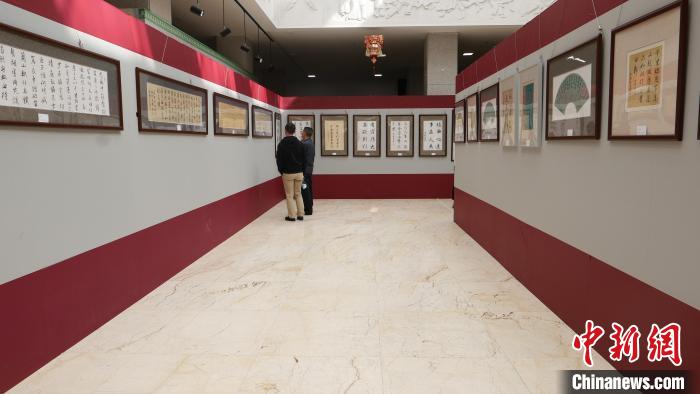 圖為書法展部分作品展示?!≈x牧 攝