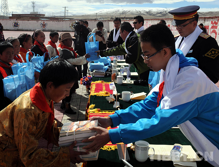 為了幫助西藏貧困地區(qū)的藏族孩子學到更多的科學文化知識,豐富他們的業(yè)余文化生活,新華社北京分社在捐贈中號召黨團員積極參與,共捐藏漢文書籍1000多冊,并委托我將這些書送到西藏孩子手中。