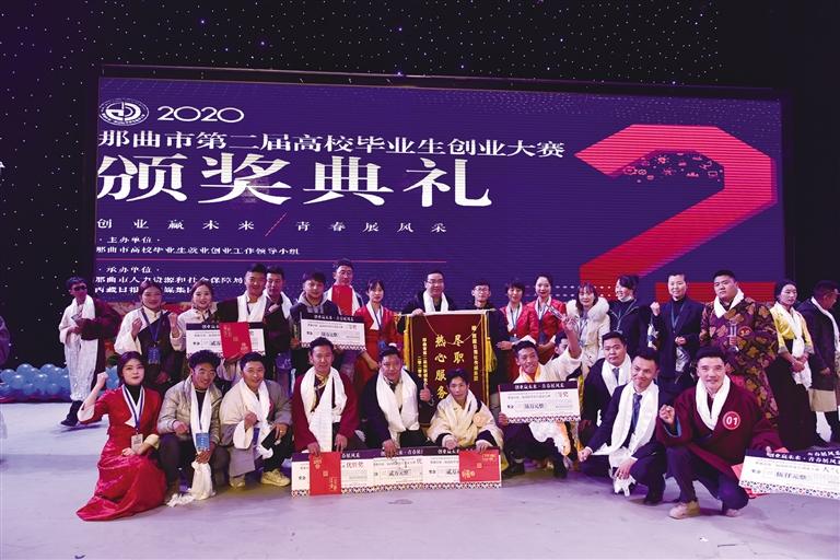 那曲市第二屆高校畢業(yè)生創(chuàng)業(yè)大賽頒獎現(xiàn)場。