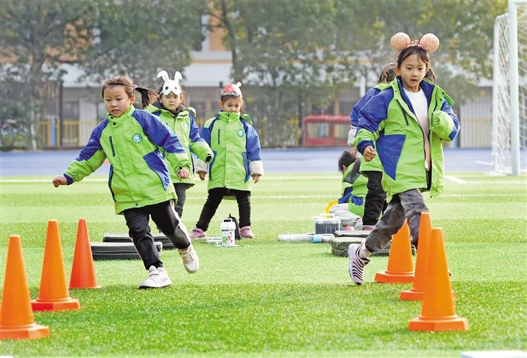 圖為1月11日,在合肥市夢(mèng)園小學(xué)教育集團(tuán)楓林路學(xué)校,學(xué)生在參加美術(shù)結(jié)合體育的測(cè)評(píng)項(xiàng)目。新華社記者 周牧 攝