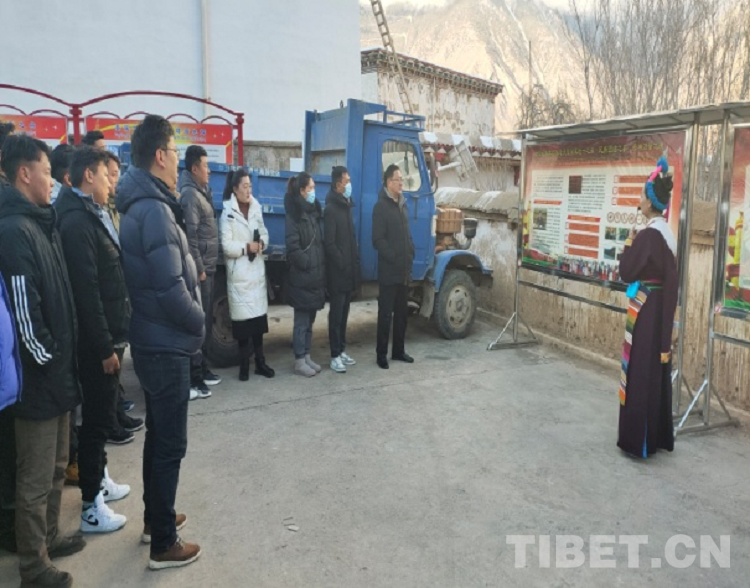 圖為觀摩團(tuán)在聽取芒康縣相關(guān)工作人員介紹