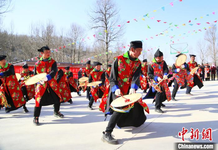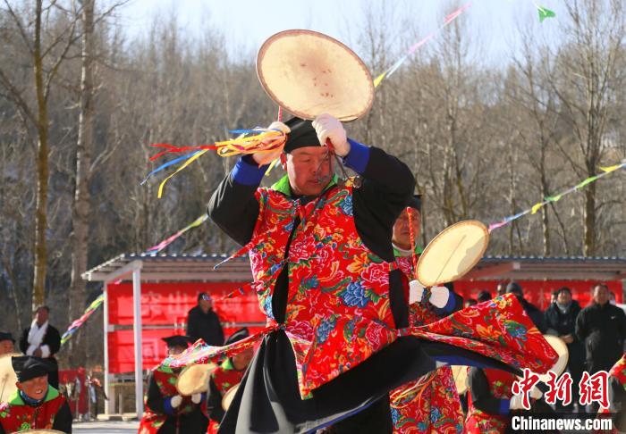 “我們會在每年春天播種前后,舉行廟會。會上由法師打著單面扇形羊皮鼓跳舞,祈求禳災(zāi)避禍,平安吉祥。由于敲鼓時發(fā)出了‘梆、梆’聲響就稱它為梆梆會。”梆梆舞非遺傳承人李占森介紹,梆梆會是土族民俗祭祀文化保留最為完整的活動。