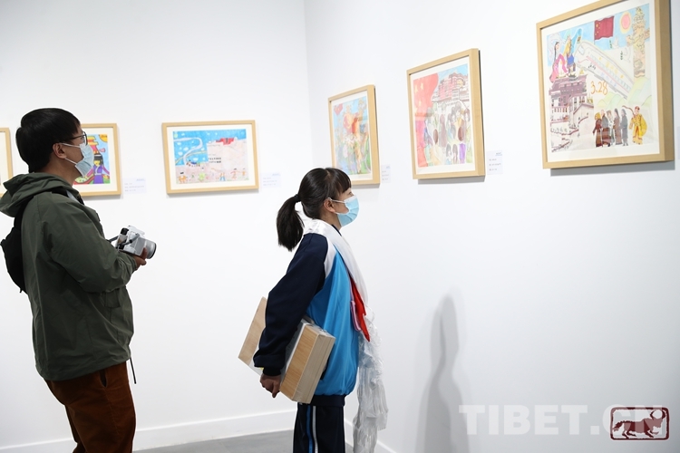 圖為畫美時代——“紀(jì)念西藏百萬農(nóng)奴解放63周年”拉薩市青少年優(yōu)秀繪畫作品展現(xiàn)場