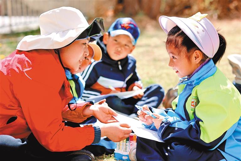 圖為幼兒園老師在教孩子們繪畫。通訊員 倫珠澤仁 記者 洛桑 攝