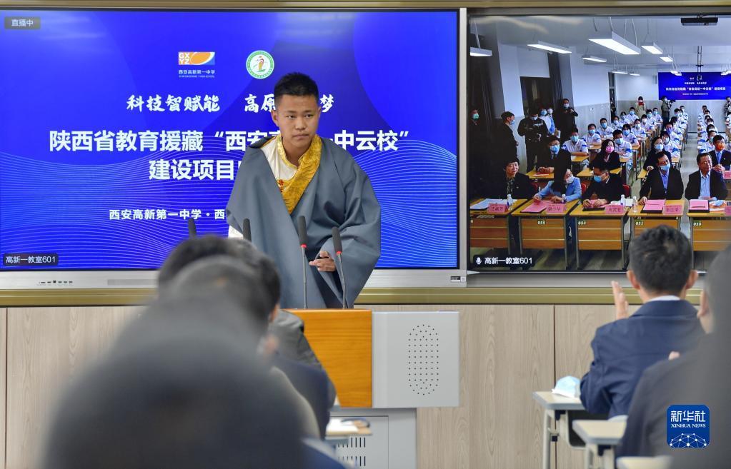 當(dāng)日,陜西省教育援藏“云校”建設(shè)項(xiàng)目正式啟動(dòng)。陜西省西安高新第一中學(xué)和西藏拉薩阿里地區(qū)高級(jí)中學(xué)結(jié)成“對(duì)子”,借助5G網(wǎng)絡(luò)開(kāi)展教學(xué)教研互動(dòng),助力提升教育水平。