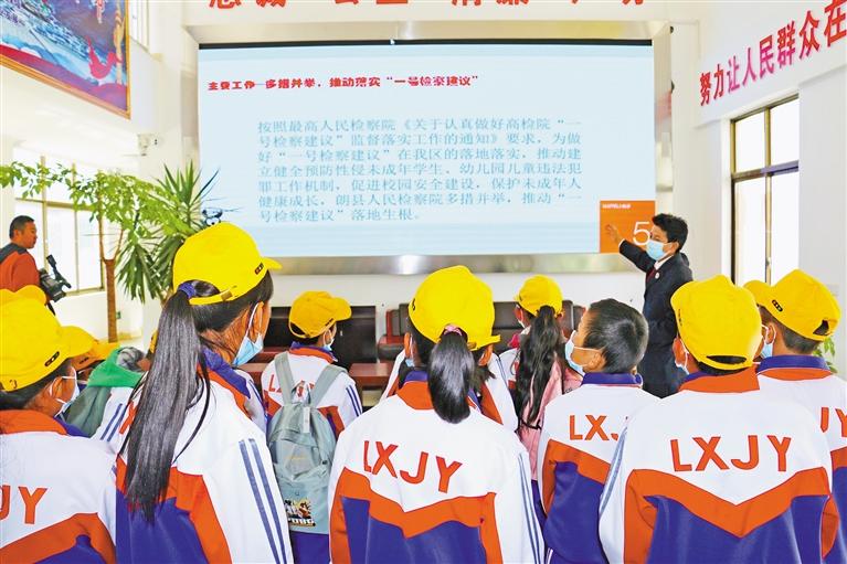 自2016年法治進校園活動開展以來,索朗旺久以高度的擔當意識,積極克服公訴、未檢人手不足的困難局面,先后擔任朗鎮(zhèn)小學法治副校長、朗縣中學法治輔導檢察官,及時制訂《開展“法治進校園”全縣巡講活動實施方案》,定期深入全縣8所中小學及幼兒園開展法治宣講活動。