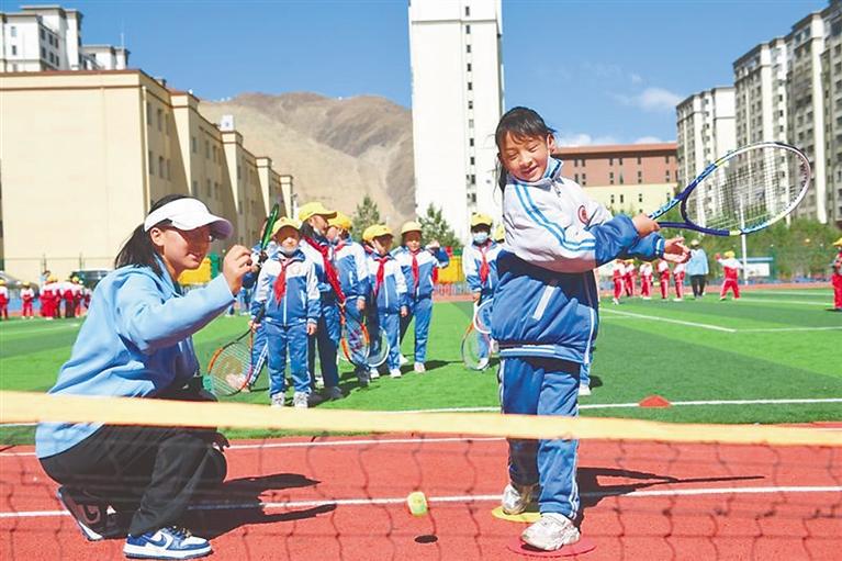 西藏:網(wǎng)球進校園 大手教小手