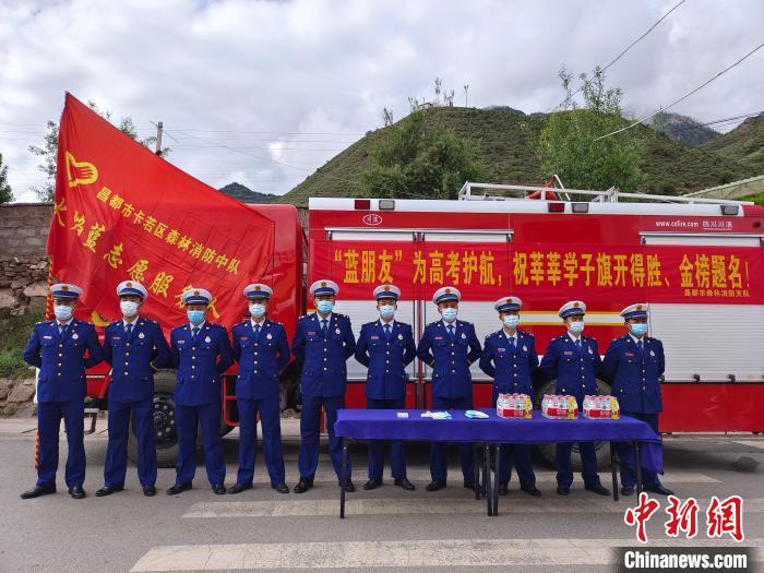圖為消防指戰(zhàn)員為考生送去暖心“大禮包”??ㄈ魠^(qū)森林消防中隊 攝