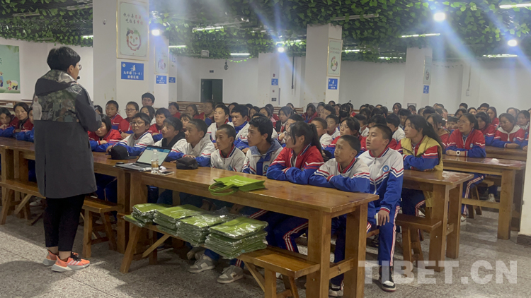 圖為專業(yè)講師為昌都市第二初級(jí)中學(xué)學(xué)生講解青少年自我保護(hù)、兒童權(quán)益維護(hù)知識(shí)