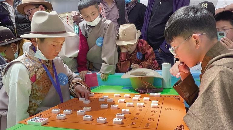 當天上午,參與比賽的學生身穿民族服裝,難掩激動的心情。比賽開始,國王大臣棋和西藏象棋同時進行,每場對弈中小選手們“互不相讓”認真琢磨對方的下棋思路,隨著比賽的進行,學生們熱情高漲,表現(xiàn)出極強的勝負欲。