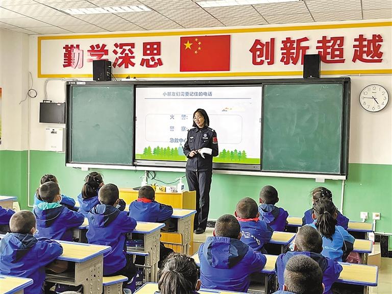 圖為日喀則邊境管理支隊(duì)帕里邊境派出所民警走進(jìn)學(xué)校宣講法律知識(shí)。記者 趙文慧 通訊員 白瑪倉覺 攝