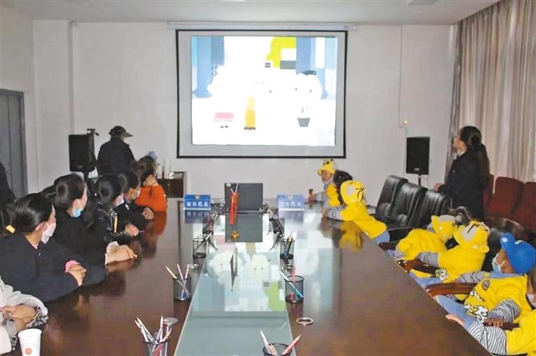 圖為色尼區(qū)人民檢察院通過多媒體法律講堂向幼兒和家長(zhǎng)代表播放《中華人民共和國(guó)家庭教育促進(jìn)法》。記者 萬(wàn)靖 攝