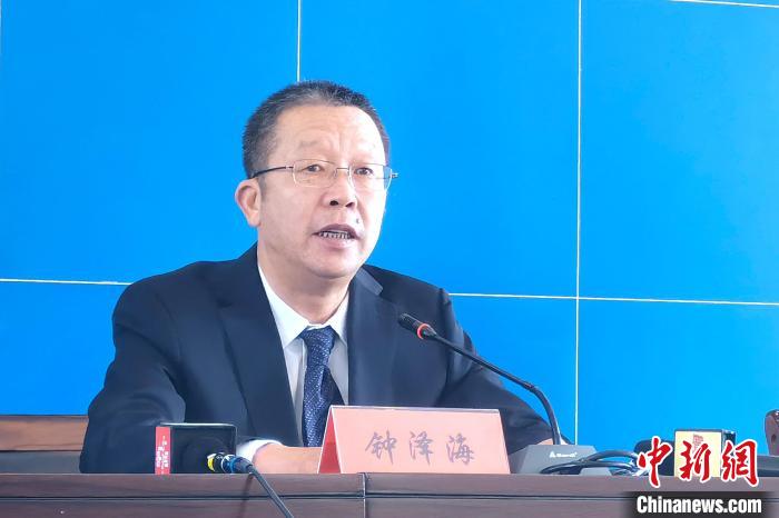 圖為青海省教育廳黨組成員、副廳長鐘澤海在新聞發(fā)布會?!±铍h 攝