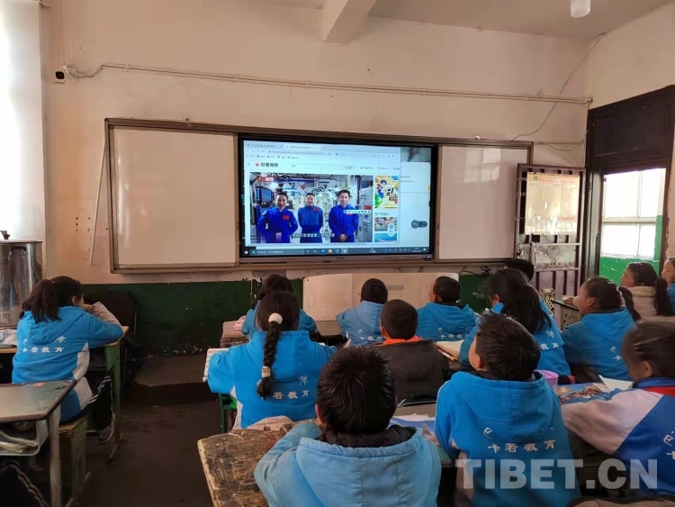 昌都市卡若區(qū)俄洛鎮(zhèn)中心小學(xué)學(xué)生認(rèn)真收看“天宮課堂”第二課