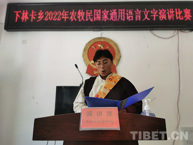 中國西藏網(wǎng)訊 近日,一場主題“學習宣傳貫徹黨的二十大精神、全面振興鄉(xiāng)村文化、促進民族團結進步”的農(nóng)牧民國家通用語言文字演講比賽在西藏自治區(qū)昌都市左貢縣下林卡鄉(xiāng)政府舉行。