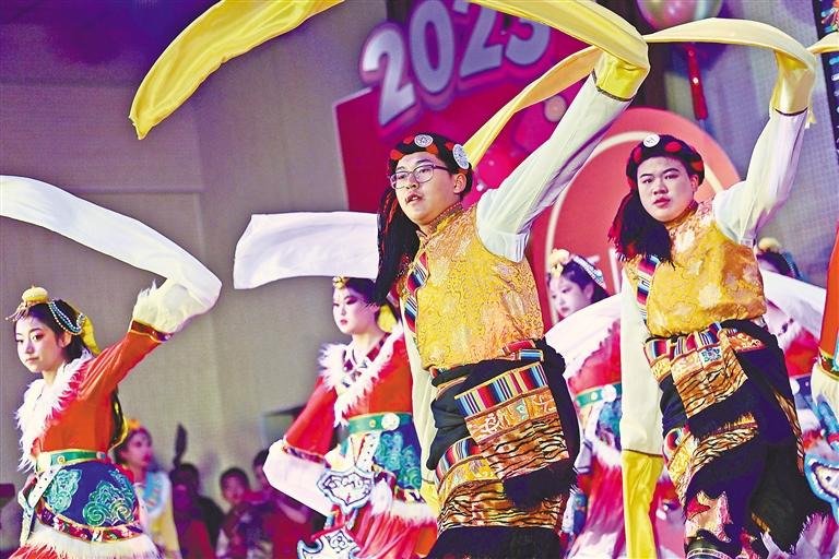 圖為學(xué)生在藏歷新年團(tuán)拜活動(dòng)上表演藏族舞蹈。 新華社記者 李一博 攝