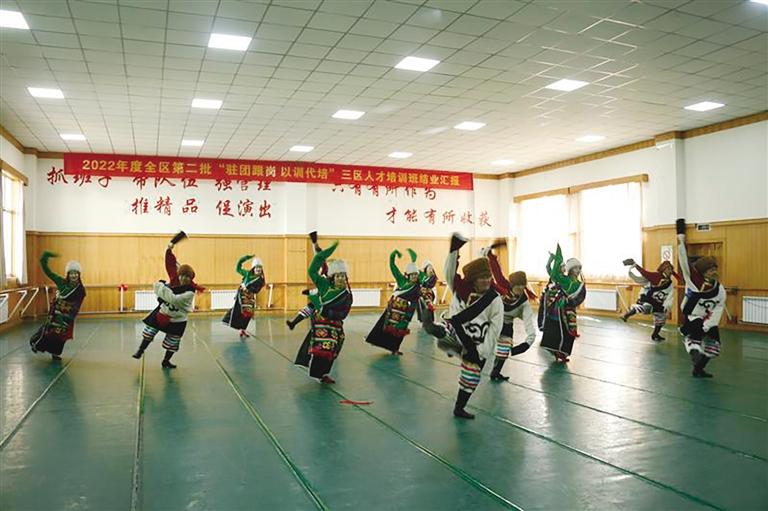 2022年3月,為進(jìn)一步做好全區(qū)縣區(qū)舞蹈演員專業(yè)技能的提升工作,自治區(qū)歌舞團(tuán)啟動了全區(qū)第二批“駐團(tuán)跟崗、以訓(xùn)代培”日喀則市、阿里地區(qū)藝術(shù)團(tuán)舞蹈演員培訓(xùn)工作。西藏自治區(qū)歌舞團(tuán)黨委副書記、團(tuán)長高英介紹,第二批參訓(xùn)學(xué)員分別來自阿里地區(qū)措勤縣、改則縣、革吉縣、普蘭縣、日土縣,和日喀則市亞東縣、昂仁縣、定日縣、薩迦縣、吉隆縣、崗巴縣、仲巴縣、薩嘎縣等14個縣。
