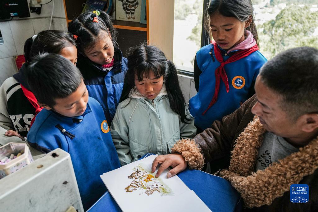 3月31日,下察隅鎮(zhèn)中心小學(xué)新春老師(右一)帶領(lǐng)僜人學(xué)生閱讀繪本。新華社記者 洛卓嘉措 攝