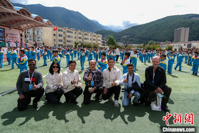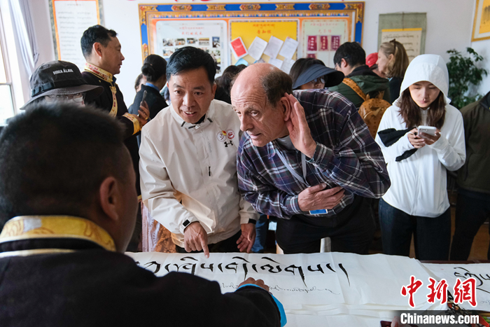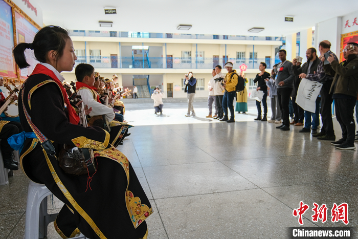 多國(guó)駐華大使及外籍人士在西藏小學(xué)聽(tīng)扎念琴、體驗(yàn)藏文書(shū)法