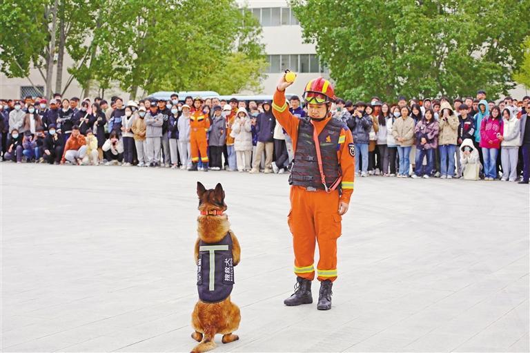 消防指戰(zhàn)員在西藏大學(xué)進(jìn)行搜救犬表演。肖暄 攝