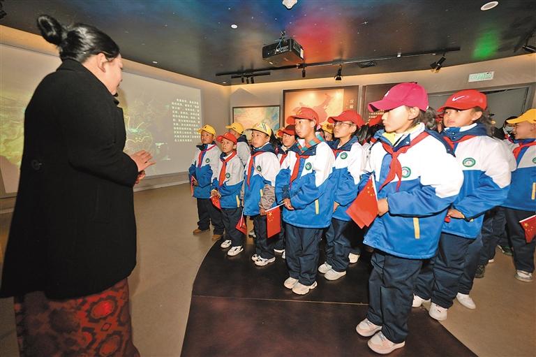 圖為拉薩市堆龍德慶區(qū)乃瓊中心小學的學生參觀百萬農奴解放紀念館。記者 潘多 攝