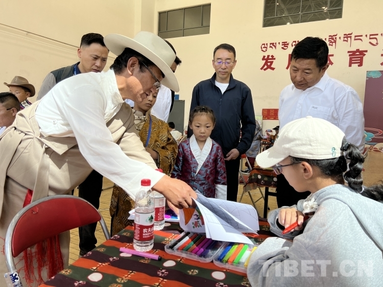 圖為小小藏棋老師給家長(zhǎng)傳授藏棋玩法和畫棋盤現(xiàn)場(chǎng) 攝影:德吉卓瑪