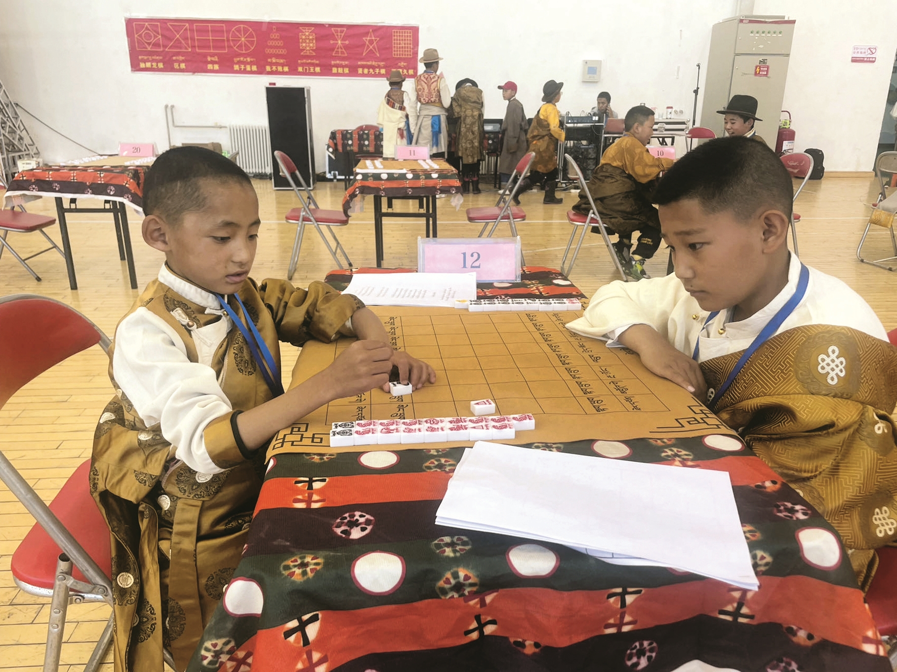 據(jù)悉,此次活動從全市各小學(xué)藏棋興趣班共選拔出51名學(xué)生參與藏棋(西藏象棋)的比賽,比賽按個人成績?yōu)榍?2名頒發(fā)獎狀、獎品。藏棋比賽(西藏象棋)結(jié)束后,棋手們還為觀眾展示了西藏14路久棋、17路密芒、5路和14路夾棋、系列國王大臣棋、牛角棋、陽光拉薩棋、聰明的九子棋、三頭六點棋、三聯(lián)棋、我不敗棋、牛角上狗追鹿棋、四族棋、逼角棋、鴿子蛋棋、塔棋等棋藝表演。