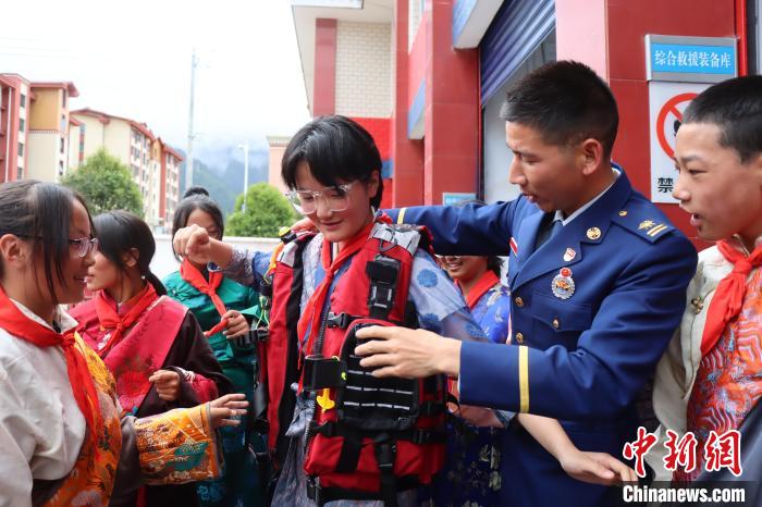 圖為消防員正在為學生普及防災減災知識。西繞拉翁 攝