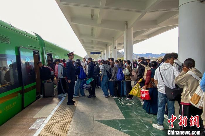 圖為暑運(yùn)期間,旅客在日喀則火車站搭乘高原復(fù)興號(hào)動(dòng)車組出行。日喀則火車站 供圖