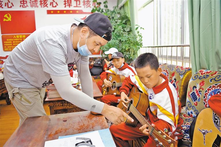 拉薩市第四中學的老師指導學生學習吉他彈奏。記者 王敏 攝