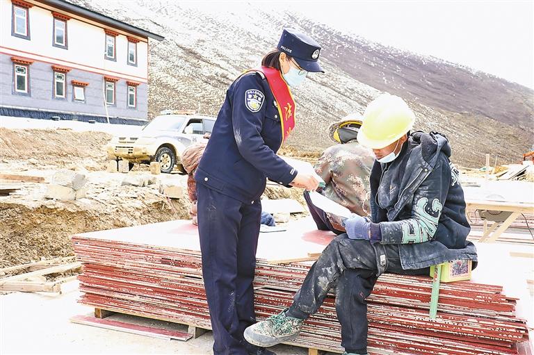 帕里邊境派出所民警在轄區(qū)工地開展憲法宣傳周普法宣傳活動,并發(fā)放憲法宣傳資料。 記者 汪純 通訊員 白瑪倉覺 攝