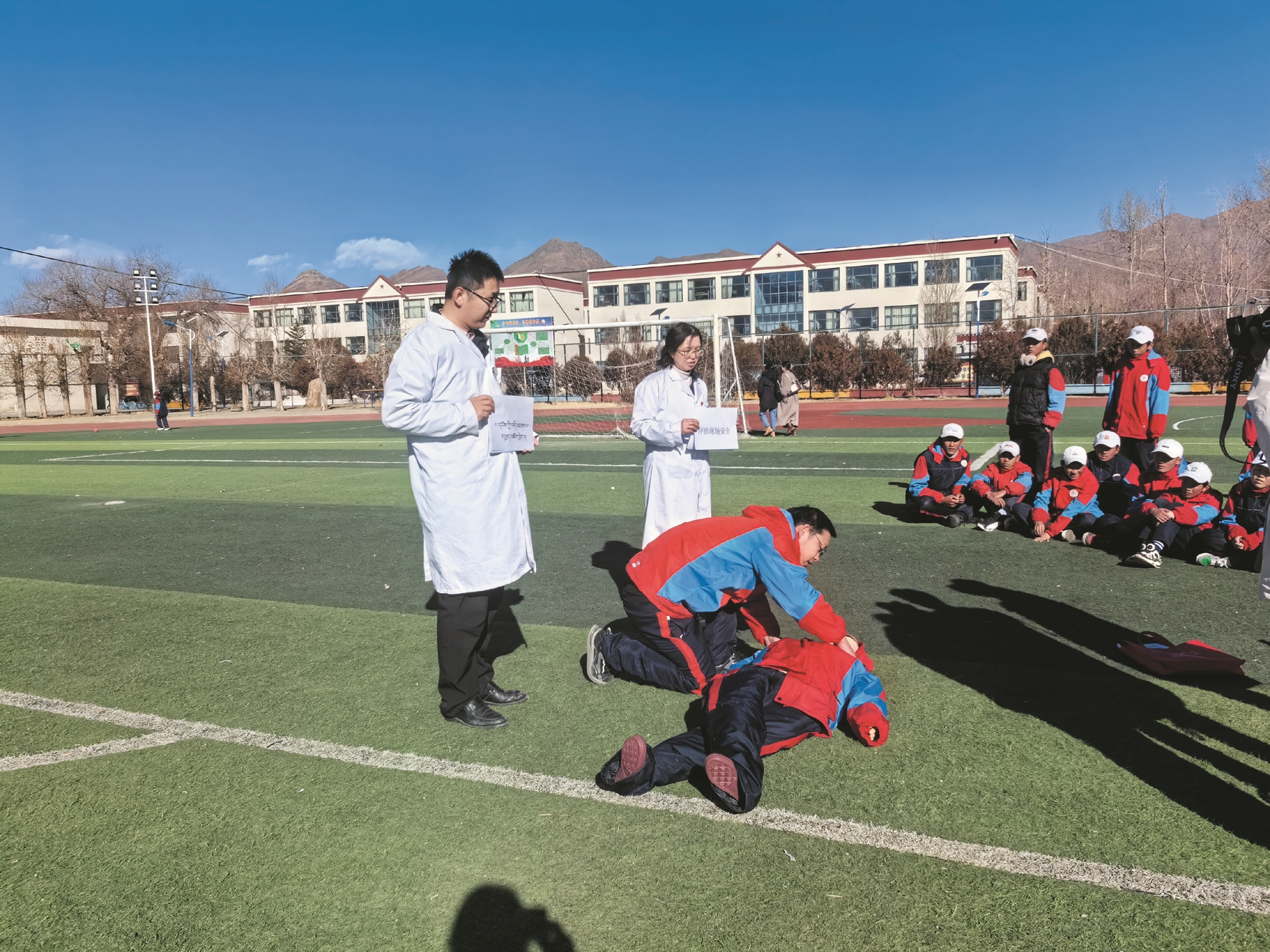 圖為援藏專家給學(xué)生們演示心肺復(fù)蘇操作過程。拉薩融媒記者 次仁卓嘎攝