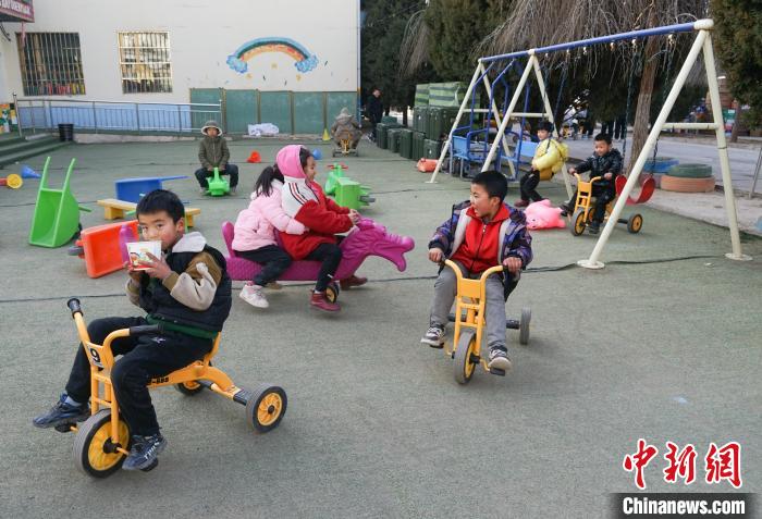 12月20日,青海省海東市民和縣中川鄉(xiāng)美一小學(xué)安置點內(nèi)兒童嬉戲。 馬銘言 攝