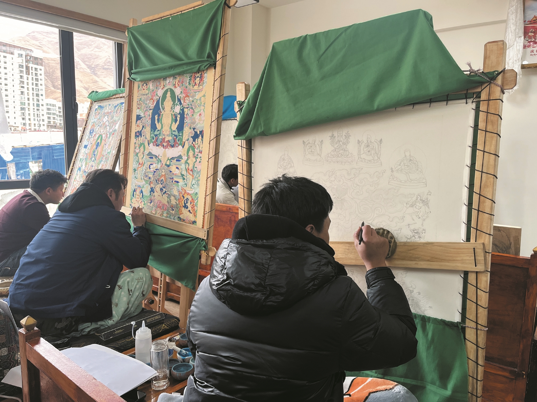 圖為學(xué)生們正在畫(huà)唐卡。拉薩融媒記者 莫瑞英攝