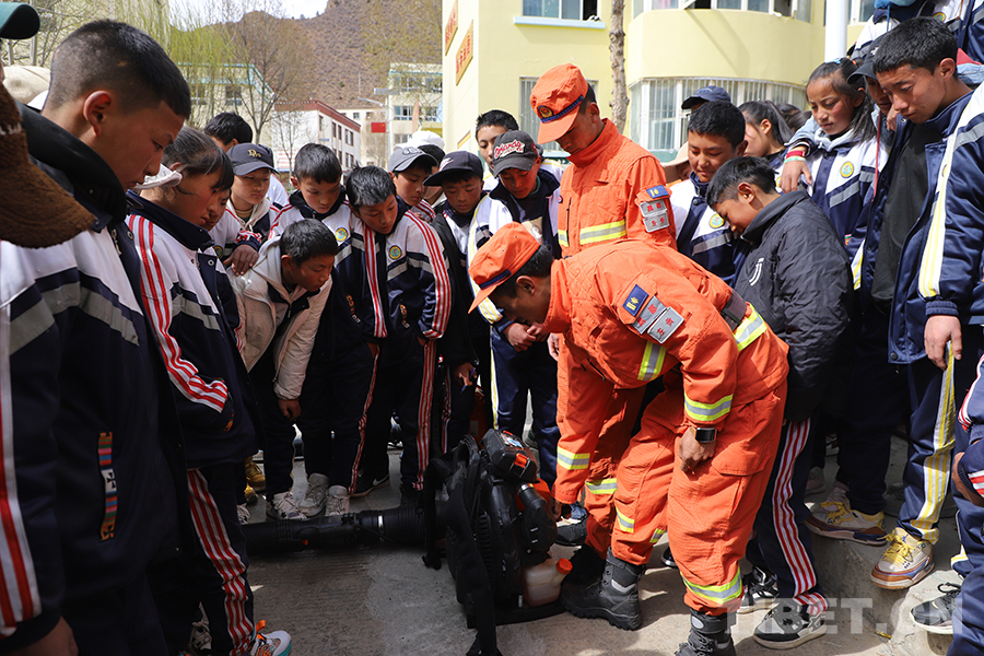 “這是風(fēng)力滅火機,此款型號的風(fēng)力滅火機最高風(fēng)速最高可以達到90m/s,遇見草原火時,我們就用它來進行滅火?!毕绬T背起風(fēng)力滅火機,將裝備點火后對準(zhǔn)預(yù)設(shè)物進行示范操作。在現(xiàn)場互動中,部分師生代表當(dāng)起“消防員”體驗設(shè)備操作。除了現(xiàn)場互動環(huán)節(jié),左貢縣消防人員還仔細檢查了學(xué)校的消防設(shè)施配置,并指導(dǎo)學(xué)校如何定期進行消防自檢。
