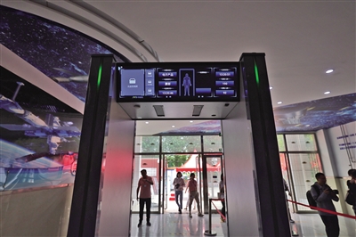 北航實(shí)驗(yàn)學(xué)校考點(diǎn),升級(jí)后的智能安檢門(mén)。新京報(bào)記者 李木易 攝