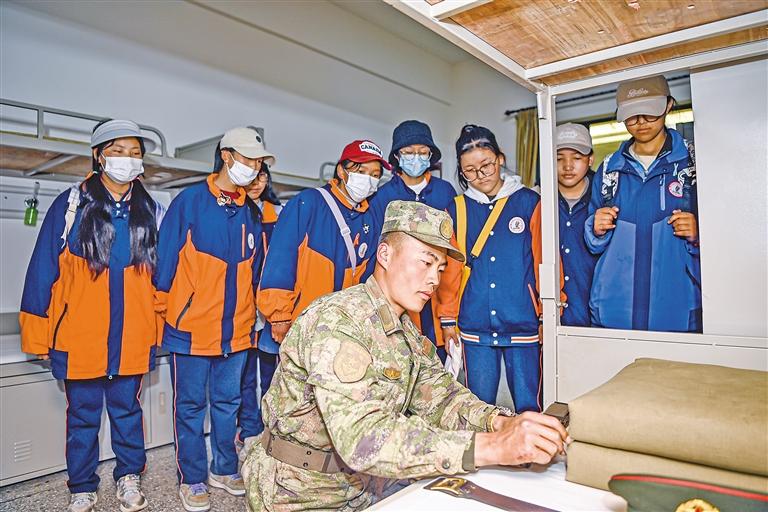 圖為八一建軍節(jié)前夕,西藏日喀則軍分區(qū)聯(lián)合日喀則市委宣傳部開展“強國復興有我”系列軍旅活動,組織青少年學生零距離感受軍營風采,切實提高國防意識,激發(fā)愛國主義情懷。這是學生們參觀官兵宿舍。通訊員 馮千恩 劉煜欽 記者 楊子彥 攝