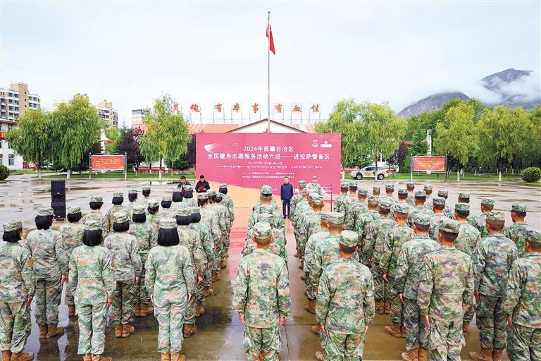 圖為近日,西藏自治區(qū)體育局及體育總會干部職工走進駐藏某部,開展全民健身志愿服務“六進”暨送體育進部隊活動。這是活動現(xiàn)場。通訊員 梁康 記者 唐斌 攝