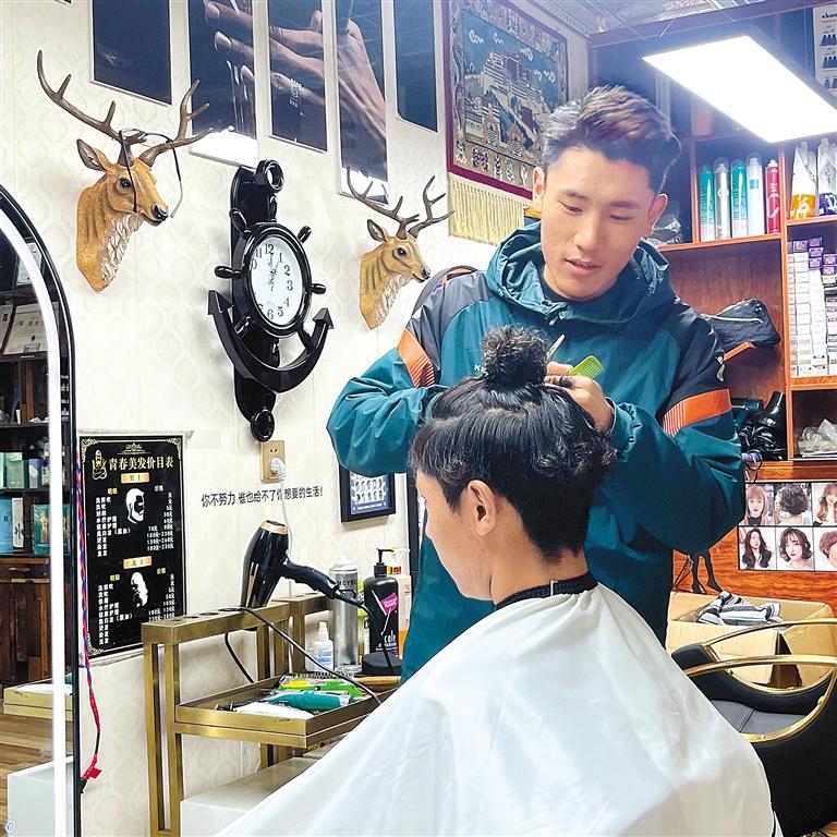 “這些年,隨著家鄉(xiāng)越來(lái)越繁榮,群眾生活水平不斷提高,大家也更加注重形象,對(duì)‘美’有了更高的追求。”經(jīng)過(guò)自己的觀察思考和對(duì)家鄉(xiāng)的深入了解,巴桑加措覺得家鄉(xiāng)的理發(fā)行業(yè)還是一片“藍(lán)?!保熬胺浅:?。