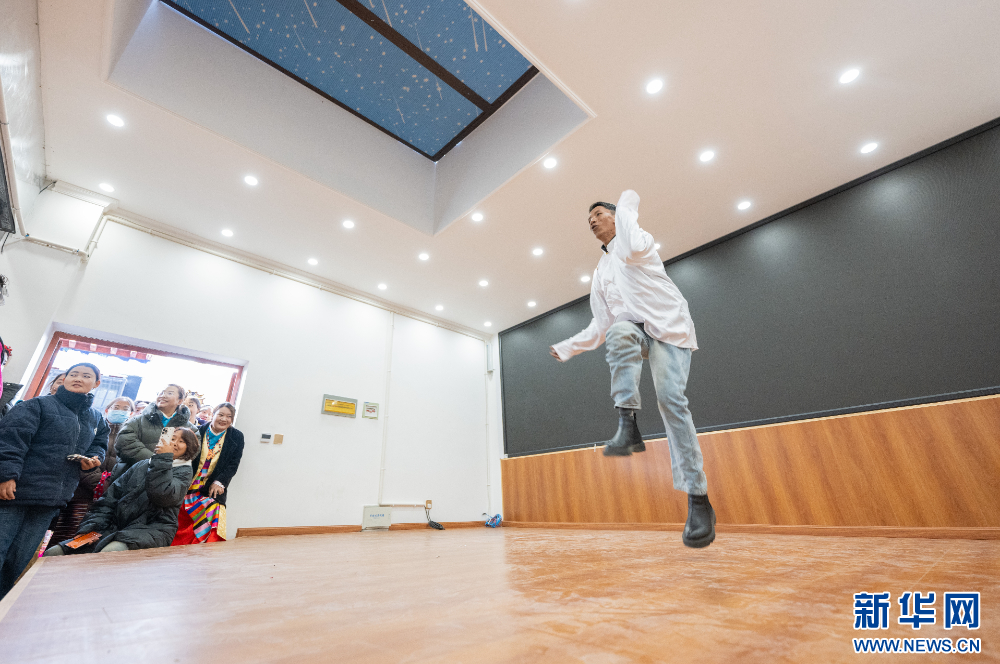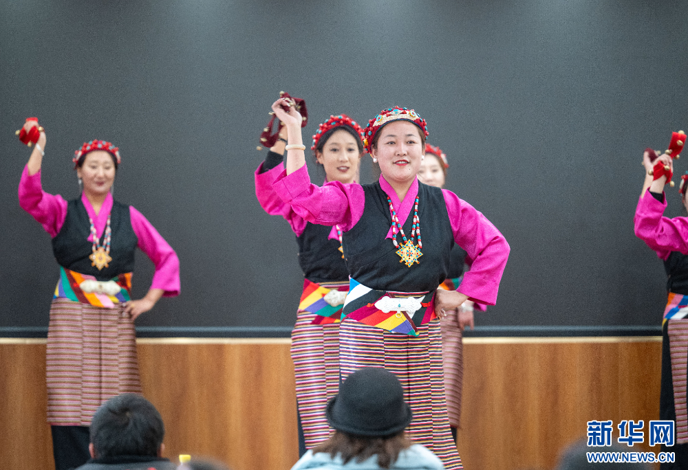 1月16日,社區(qū)文藝隊在表演節(jié)目。新華網 旦增努布 攝