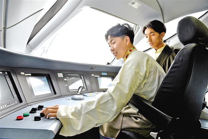 來自山西大學附屬中學西藏班的學生們在返鄉(xiāng)前,走進太原動車所探秘高鐵。圖為學生在動車機械師的引導下,體驗高鐵技術。張晉彤 記者 丹增平措 攝