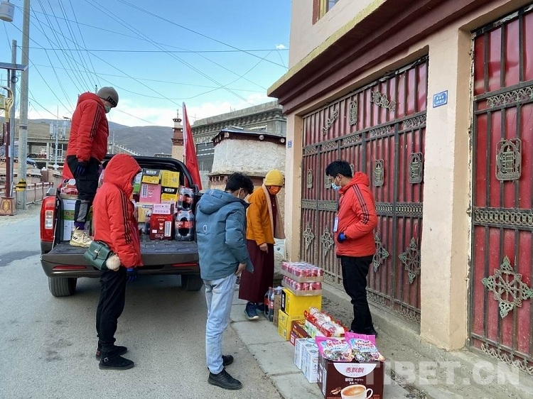 圖為理塘團(tuán)縣委“青年突擊隊(duì)”風(fēng)雪中免費(fèi)跑腿為抗疫“宅家”群眾送物資上門