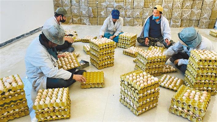 圖為當(dāng)?shù)厝罕娫谠擆B(yǎng)雞場包裝藏雞蛋。記者 黃志武 攝