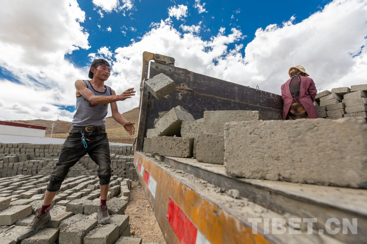 圖為西藏自治區(qū)山南市隆子縣日當(dāng)鎮(zhèn)加洛村村民平措(圖左)在當(dāng)?shù)卮u廠運(yùn)磚 攝影:趙耀