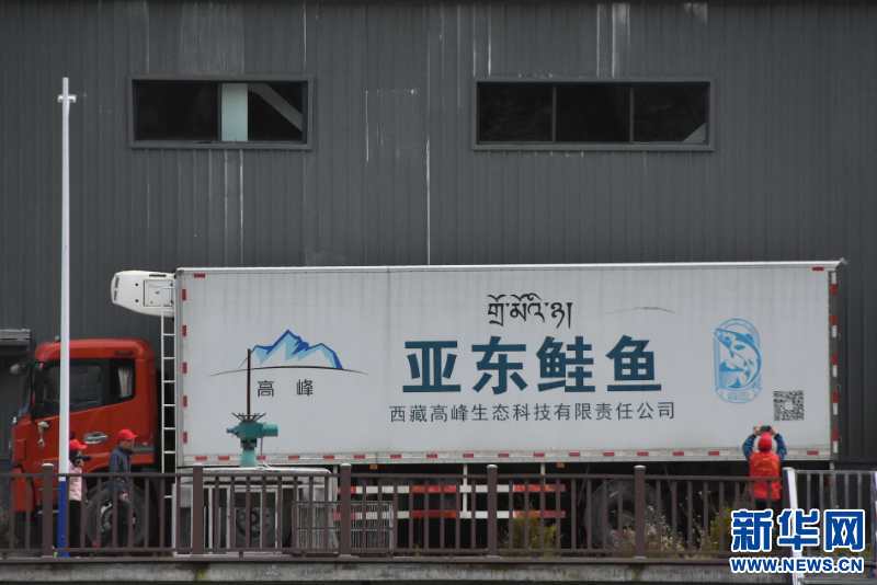9月13日拍攝的帶有亞東鮭魚標識的卡車。新華網 張宸 攝