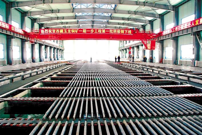 圖為玉龍銅礦(地處昌都市江達(dá)縣)一期工程第一批陰極銅下線。 記者 陳志強 攝