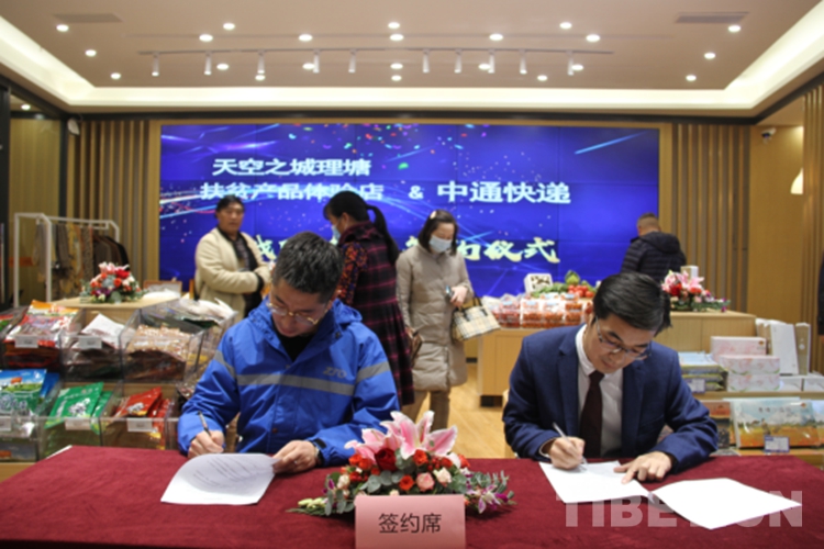 開業(yè)典禮上,四川密奇奇電商和中通快遞簽訂了戰(zhàn)略合作協(xié)議,共同推出“川西扶貧助農(nóng)”行動,解決高原農(nóng)特產(chǎn)平臺和運輸兩大問題。(中國西藏網(wǎng) 通訊員/葉強平 葉任偉 文/圖)